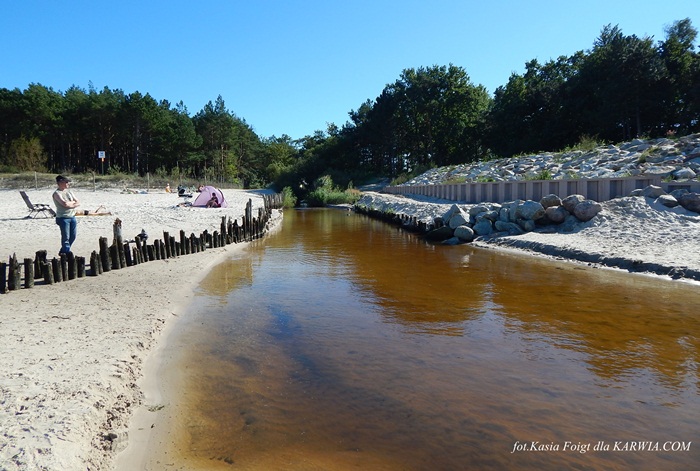 Aby dokładnie zobaczyć ujście rzeczki do morza, musimy udać się przejściem na plażę