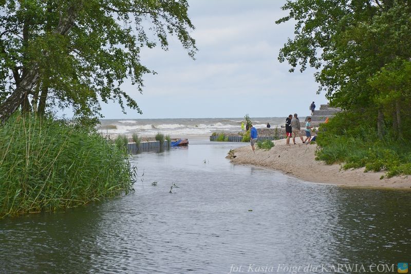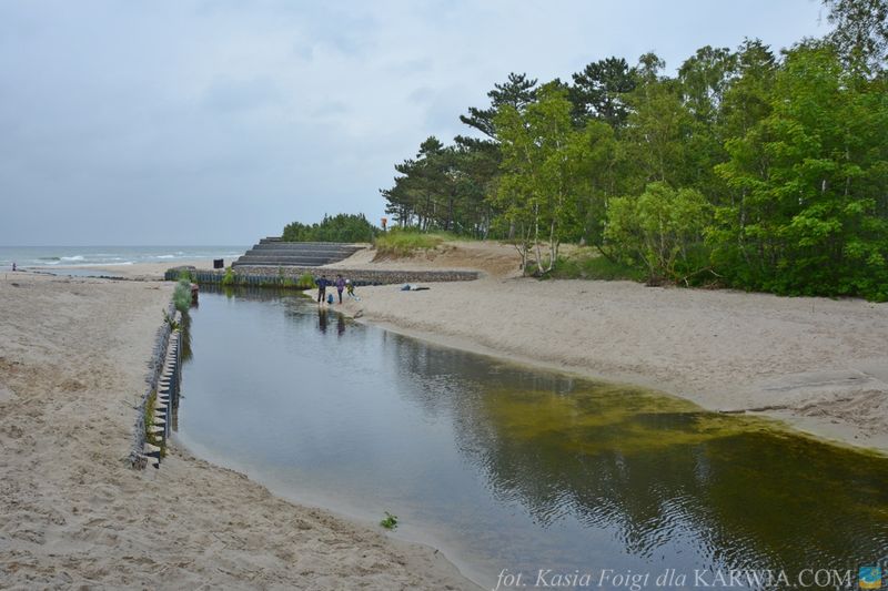 Rzeka o nazwie Czarna Woda wpada do Bałtyku w małej miejscowości Ostrowo, zlokalizowanej między Karwią a Jastrzębią Górą. Jej ujście znajduje się przy wejściu numer 38.